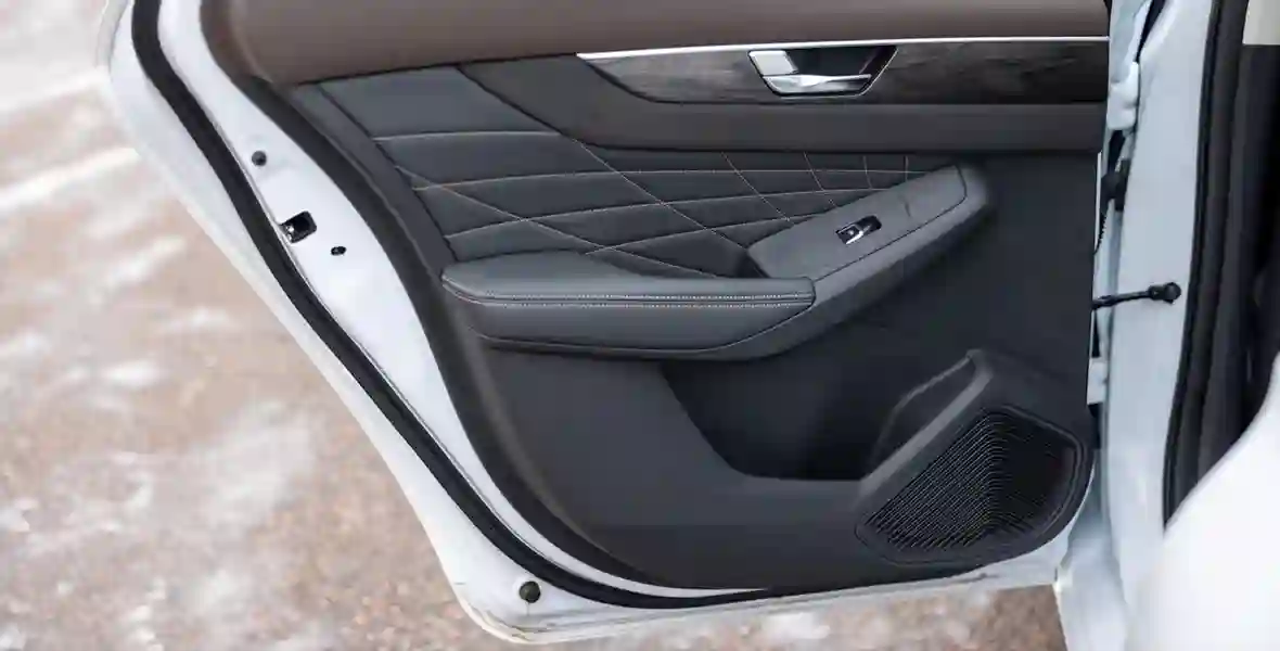Но удобств сзади немного — откидной подлокотник с подстаканниками, один на троих USB-разъём и пара кармашков для смартфонов в спинках кресел. Подогревов, а тем более пульта управления климатом нет, и даже карманы в дверях маленькие из-за подиумов для динамиков.