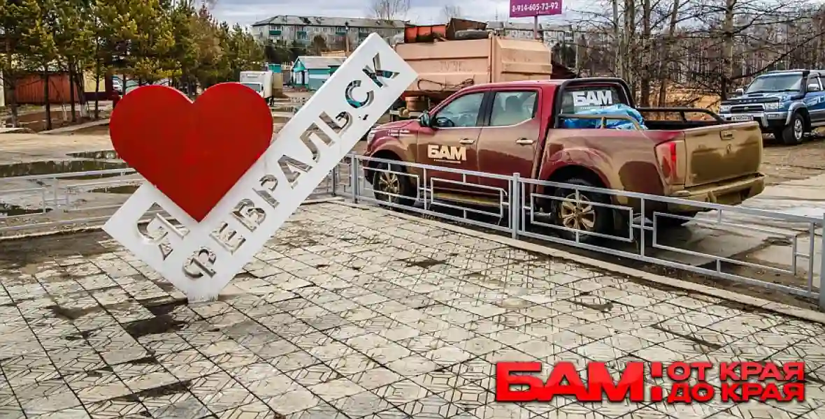 Приезжаем в Февральск. Рабочий поселок строителей Байкало-Амурской магистрали возник в августе 1974 года близ села Февральского, основанного в феврале 1896 г. Шефами поселка должны были стать строители из Красноярского края. Февральск являлся важной точкой для военных железнодорожников, а первые жилые вагончики были построены солдатами.