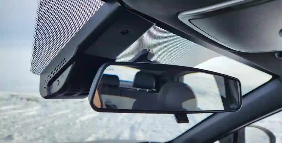 Еще одно сочетание несочетаемого — обычное зеркало заднего вида (без автозатемнения) соседствует со штатным видеорегистратором. Есть и большая панорама со сдвижной секцией, а также футляр для очков. Потолочная обивка на спортивный манер черная. При этом подстаканники маленькие, а бардачок не имеет полноценного микролифта.